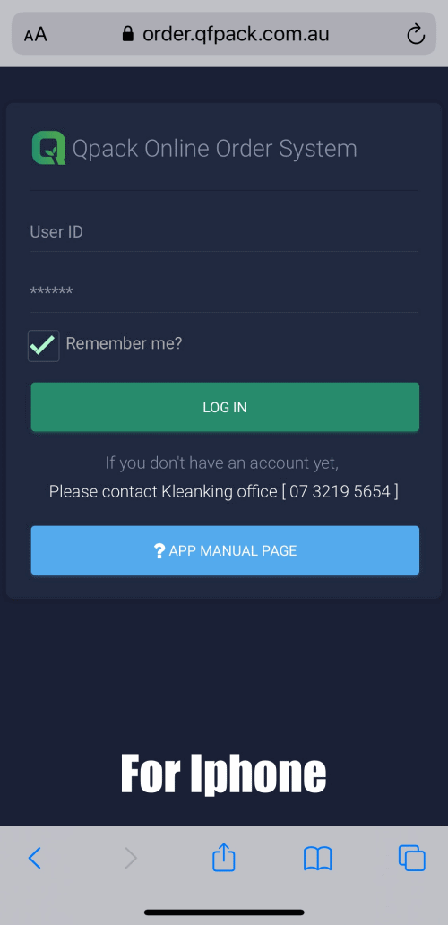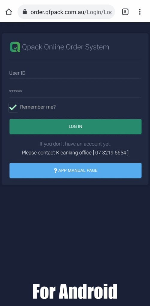 • Open Chrome browser and enter “order.qfpack.com.au” at address bar at the top.
