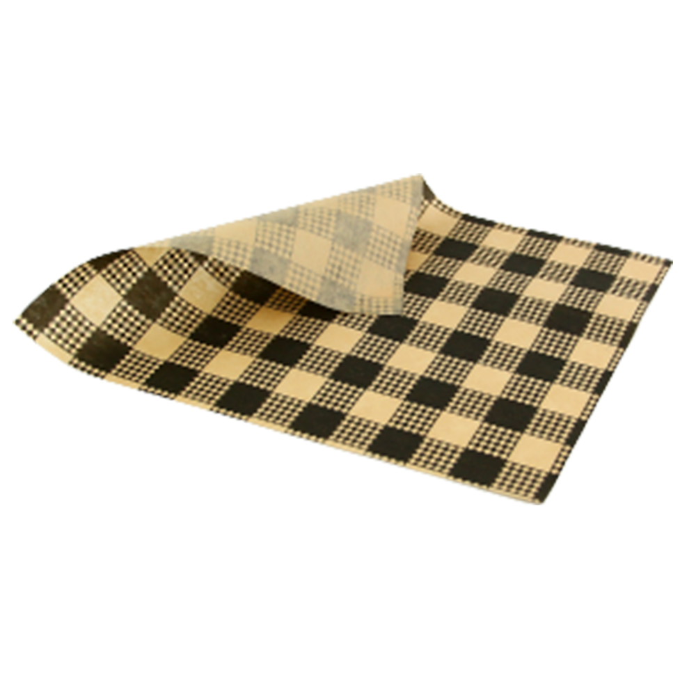 SP 150 X 190MM GREASEPROOF PAPER BROWN BLACK CHECKED 1000 SHEETS